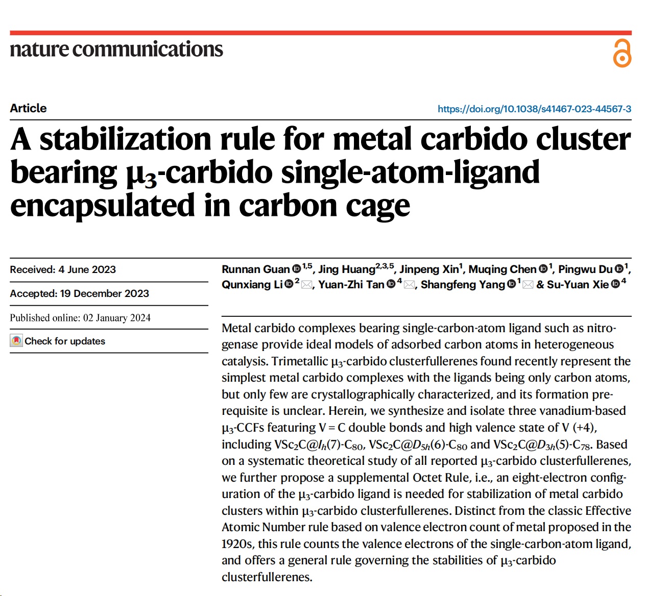 內嵌三金屬獨碳團簇富勒烯的穩(wěn)定化規(guī)則
